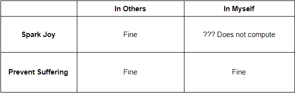 This is obviously not healthy and I do not endorse it as reasonable. Being happy is good. It is perfectly sensible for me to want to be happy. Sometimes I even am happy, and that’s good. I’m a fan of it. And yet, for whatever reason, when I try to treat the pursuit of happiness as sufficient motivation to act, it tends not to work.