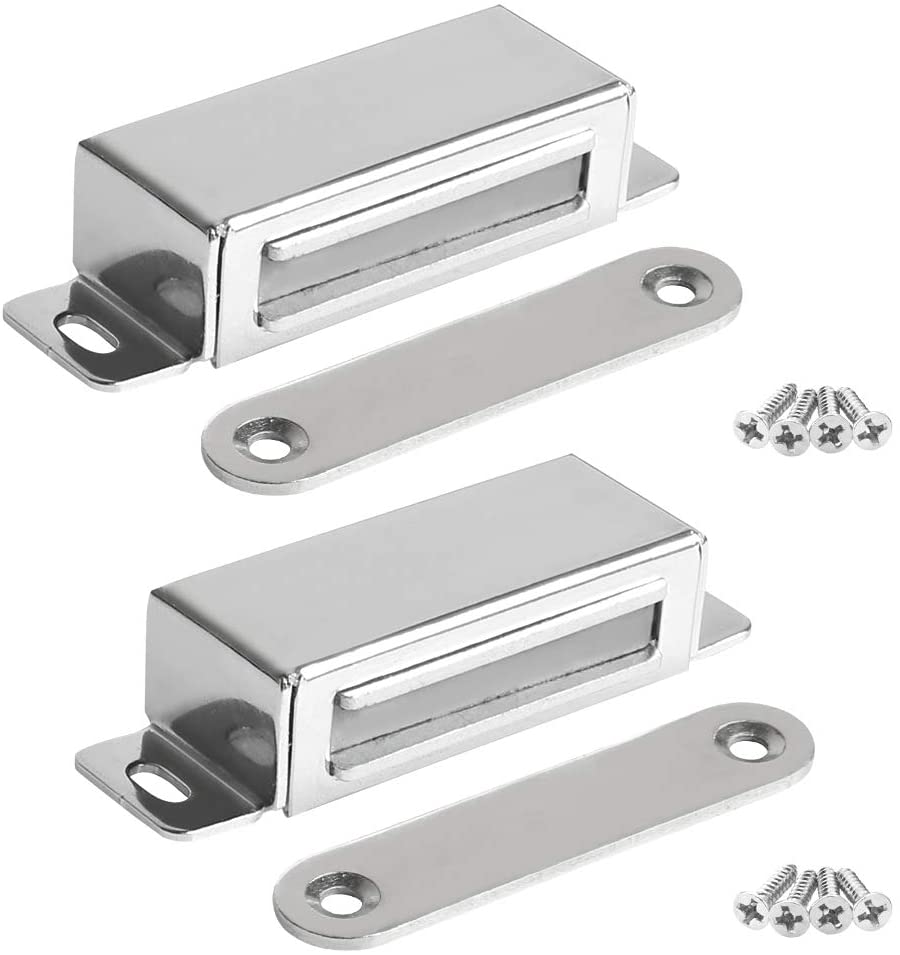 But once you’ve installed the plate the magnetic latch is, well, magnetic. So you can stick it to the plate, close the door, and see where the holes for the latch need to go. Easy.