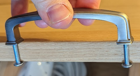 If you don’t do this and try to drill the screw holes in the right position to fit the handle by measuring, you are in for pain because you will be about a millimeter out and the screw won’t go into the handle and you’ll have to repeatedly redrill the hole and apply a lot of brute force to make it work.